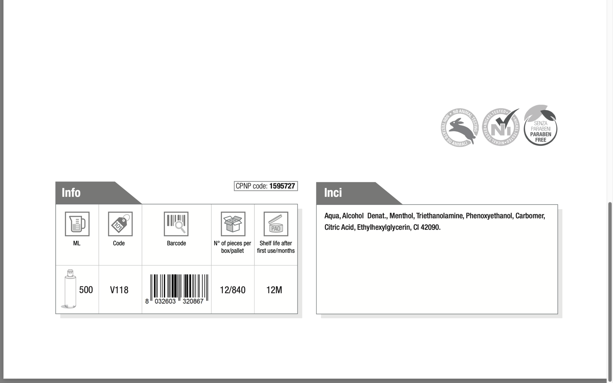 - Kenmerken: menthol, parabenenvrij, nikkel getest