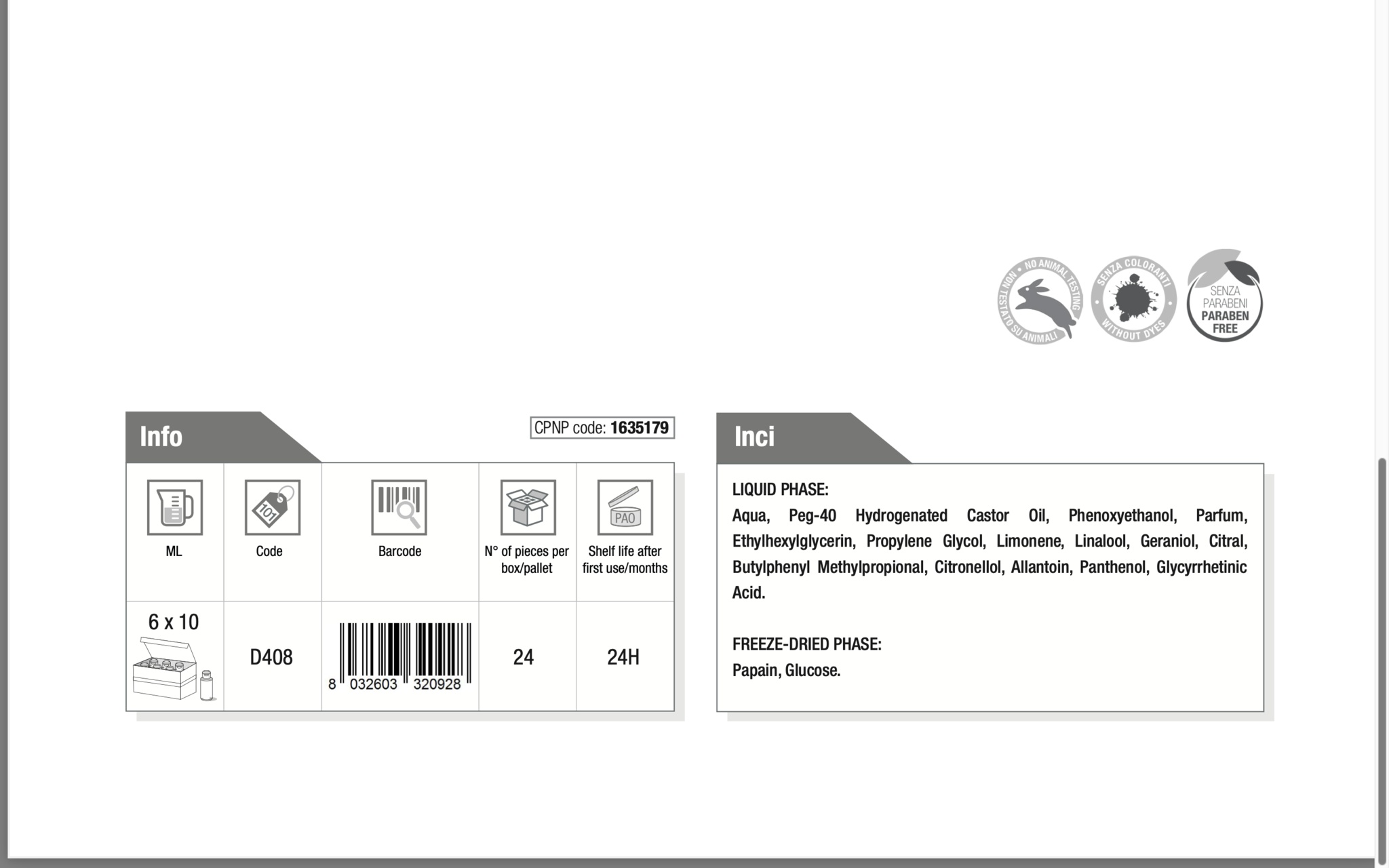 - Kernbestanddeel: papaina (enzym uit papaya); overige INCI niet bevestigd