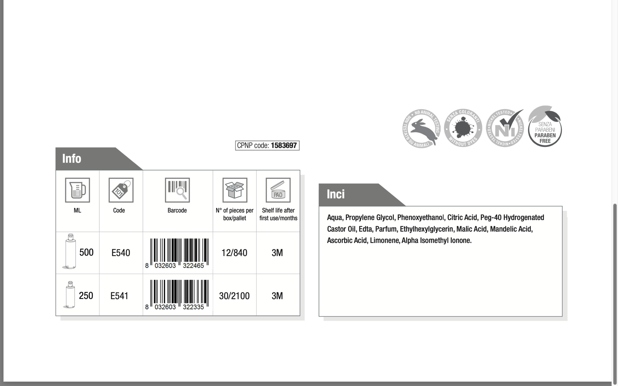 | EAN | 8032603322335 |