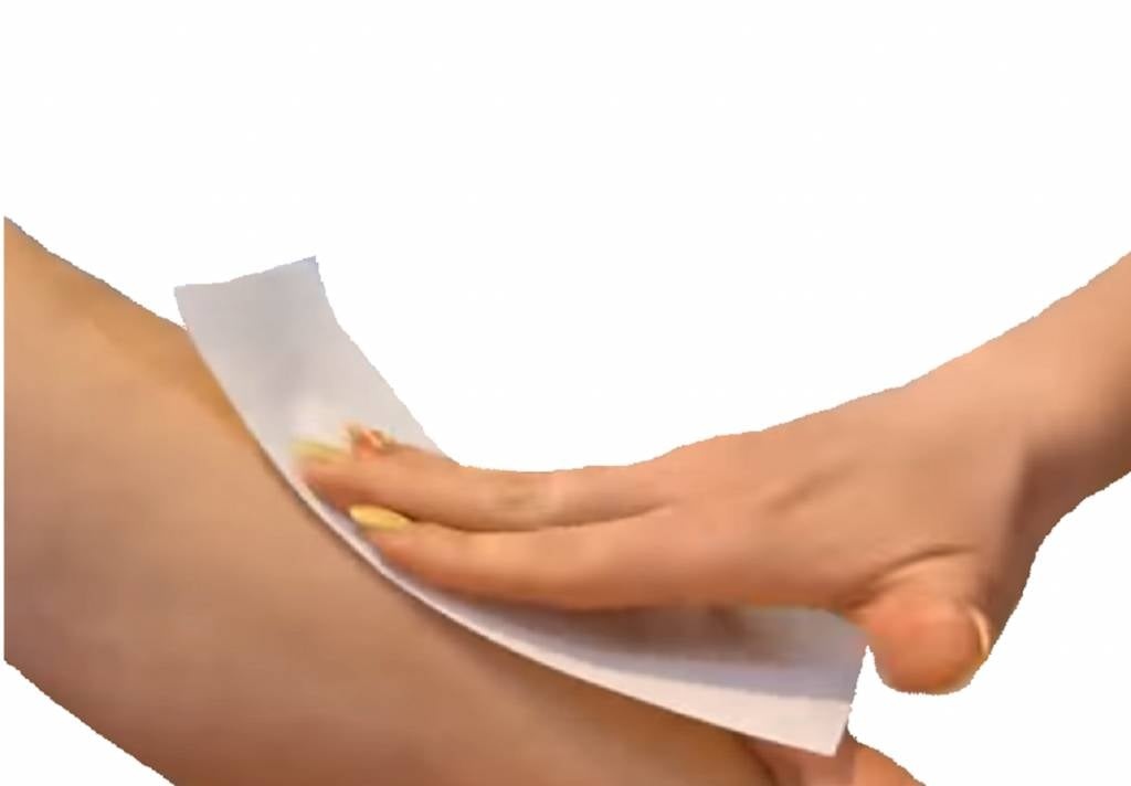 - De strip neemt de wax en de daarin verkleefde haartjes met haarwortel en al mee.